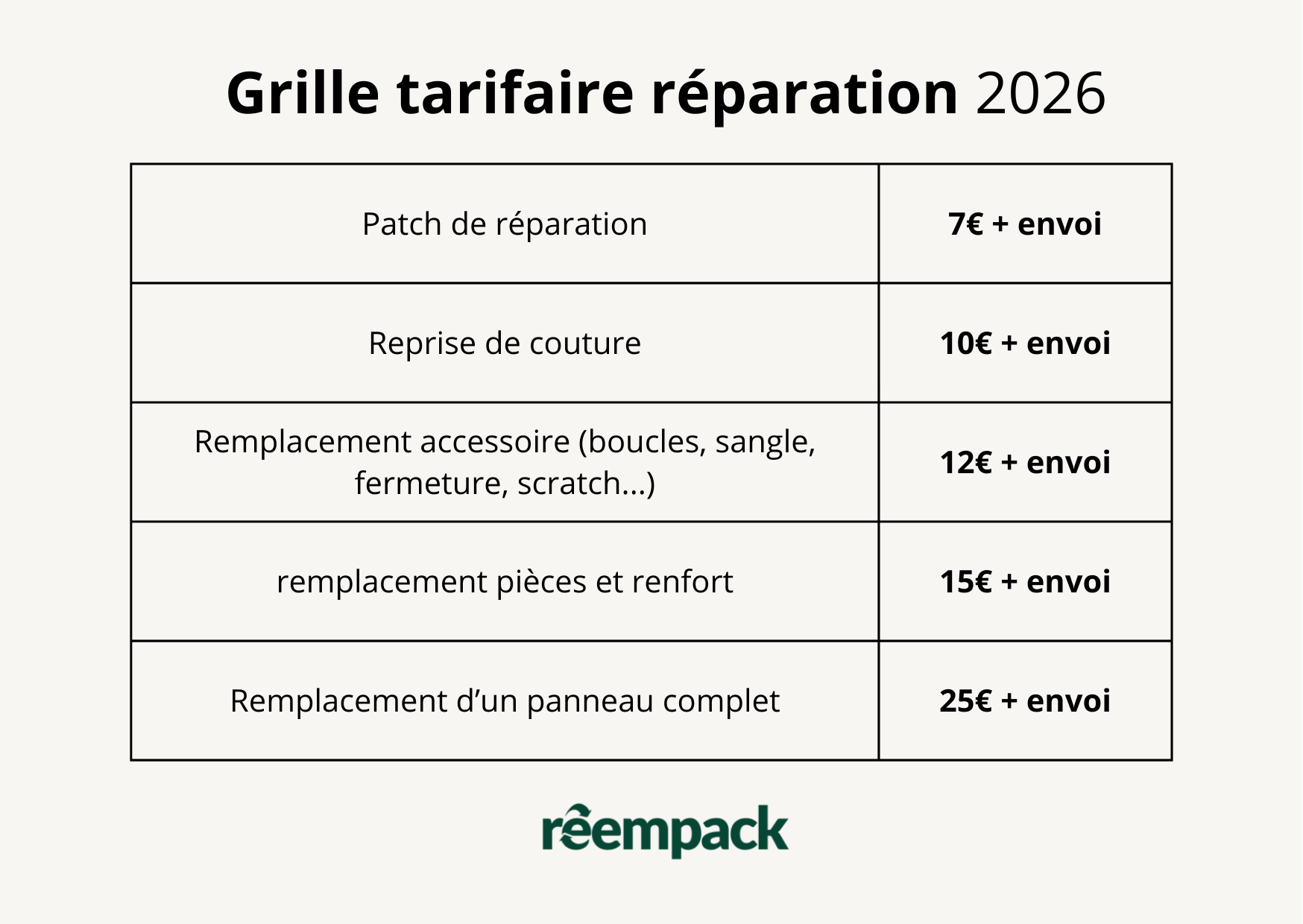 Pour augmenter sa durabilité notre housse est réparable. Tout au long de sa durée de vie vous pourrez nous demander une réparation qui sera réalisée dans nos ateliers Clermontois, la tarification s’appliquera en fonction du type d’opération.
